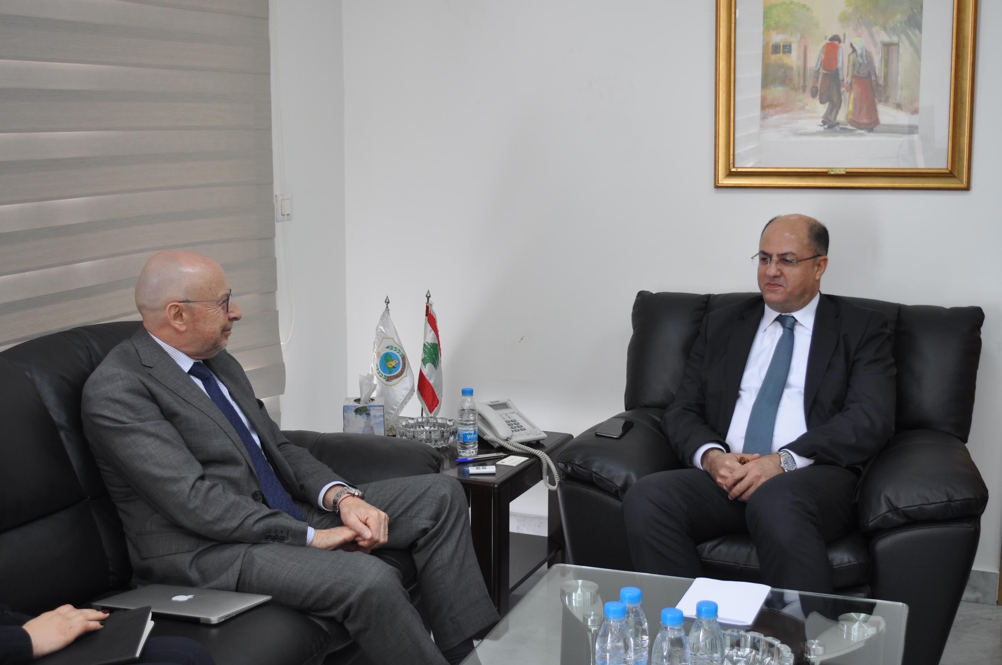 بحث وزير الزراعة الدكتور حسن اللقيس في مكتبه في الوزارة مع المدير العام للمركز العربي لدراسات المناطق الجافة والاراضي القاحلة – أكساد الدكتور رفيق علي صالح بحضور مستشارته الدكتورة ماجدة مشيك، سبل التعاون العلمي بين الوزارة ومنظمة أكساد لاسيما في دراسة السدات المائية في مختلف المناطق اللبنانية، والتجارب المشتركة مع مصلحة الأبحاث العلمية الزراعية خصوصاً في مجال استنباط أصناف القمح والشعير والزراعة الحافظة، وتزويد الوزارة بأعداد من أغنام العواس والماعز الشامي.