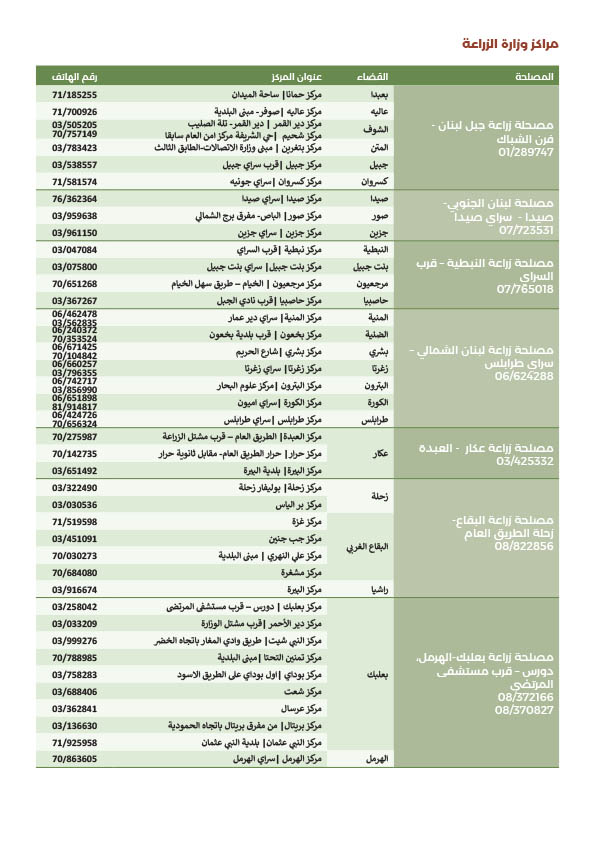 أو تواصلوا مع احد المراكز الزراعية المذكورة في الجدول المرفق ضمن الصور.