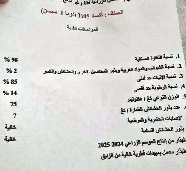 ويأتي هذا الإجراء في سياق دعم المزارعين ببذار عالية الجودة، تتمتع بنسبة نقاوة صنفية تصل إلى