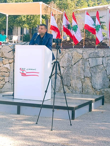 كامل الغصيني كلمة حيّا فيها شهداء الاستقلال والجيش والقوى الأمنية، مشيراً إلى أن "عيد الاستقلال الـ82 هو يوم نستحضر فيه تضحيات رجالات الوطن الذين آمنوا بلبنان عربي، حر، مستقل، وأن الاحتفال اليوم في بسابا يحمل رسالة واضحة بأننا متمسكون بأرضنا وهويتنا وقيمنا الوطنية مهما اشتدت الظروف