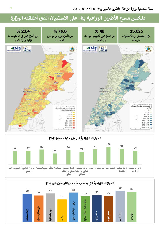 ويقدّم هذا التقرير قراءة دقيقة وشاملة لحجم الأضرار، ويحدّد الأولويات والاحتياجات الملحّة، كما يستعرض أبرز محاور خطة الاستجابة، بما يشكّل قاعدة عمل متكاملة للتدخل السريع وتعزيز صمود القطاع الزراعي