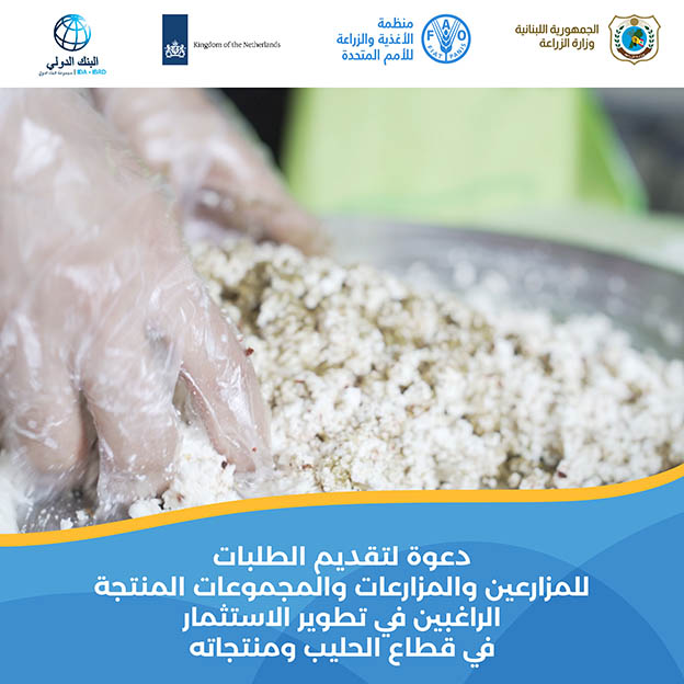 تعلن وزارة الزراعة اللبنانية - Lebanese Ministry of Agriculture، بالتعاون مع Food and Agriculture Organization of the United Nations (FAO)، وبتمويل بمنحة من برنامج "الشراكة العالمية لتحسين آفاق النازحين قسرًا والمجتمعات المضيفة" PROSPECTS عبر البنك الدولي