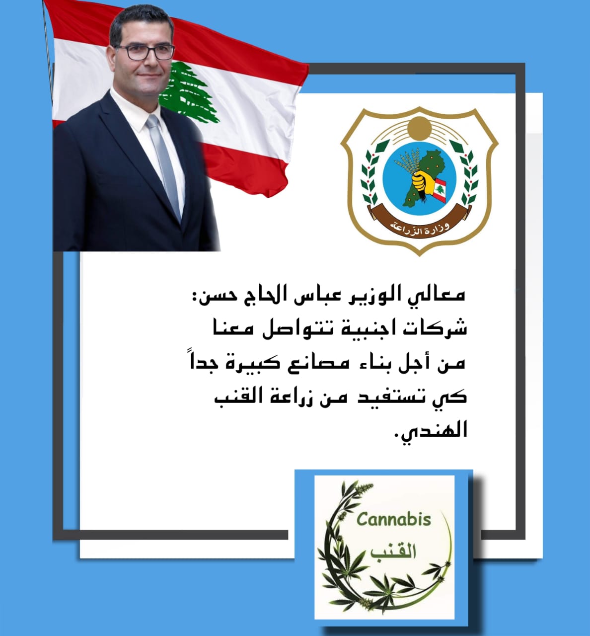 معالي الوزير عباس الحاج حسن متحدثاً حول زراعة و تصنيع القنب الهندي و اهميته في صناعة الدواء و الانسجة : شركات اجنبية تتواصل معنا من أجل بناء مصانع كبيرة جداً كي تستفيد من زراعة القنب الهندي.