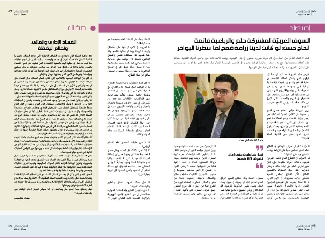 وزير الزراعة عباس الحاج حسن اعتبر في حديث الى "الامن العام" انه «كان من واجب وزارة الاقتصاد وضع الخطة منذ نحو شهر ونصف شهر التي تسمح بشراء موسم القمح بصنفيه القاسي والطري، بحيث يكون (الشراء) رسالة تمهيدا لشراء موسم الصنف الطري الذي نعمل على انتاجه السنة المقبلة».
