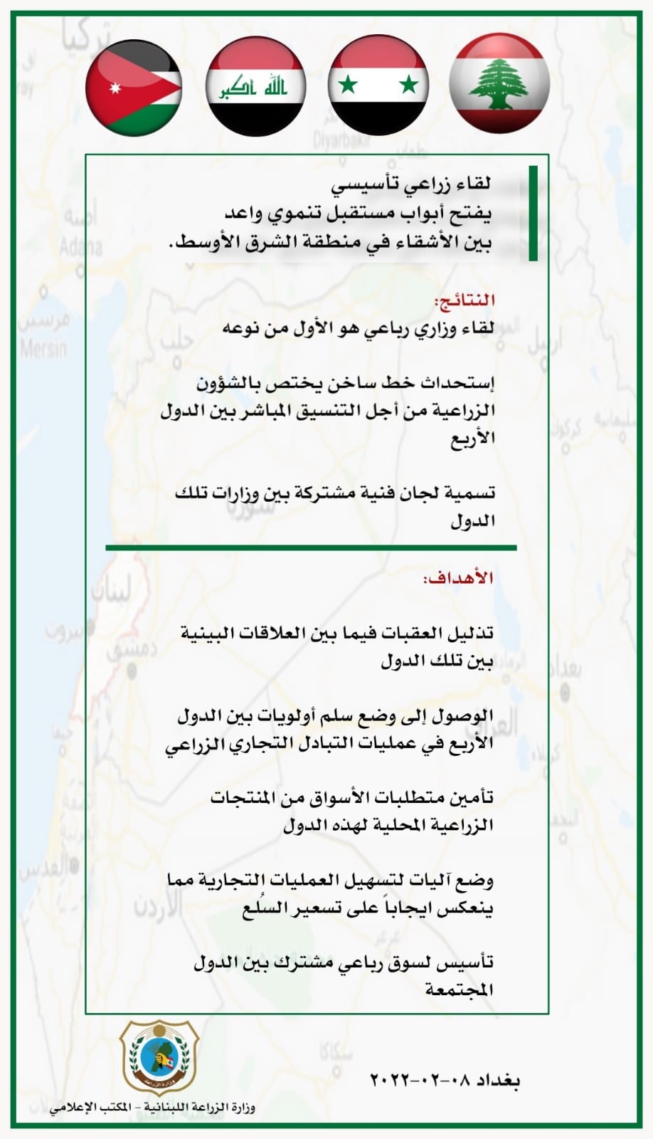 09 شباط 2022 |انفوغراف| لقاء زراعي تأسيسي يفتح أبواب مستقبل تنموي واعد بين الأشقاء في منطقة الشرق الأوسط. #وزير_الزراعة #عباس_الحاج_حسن