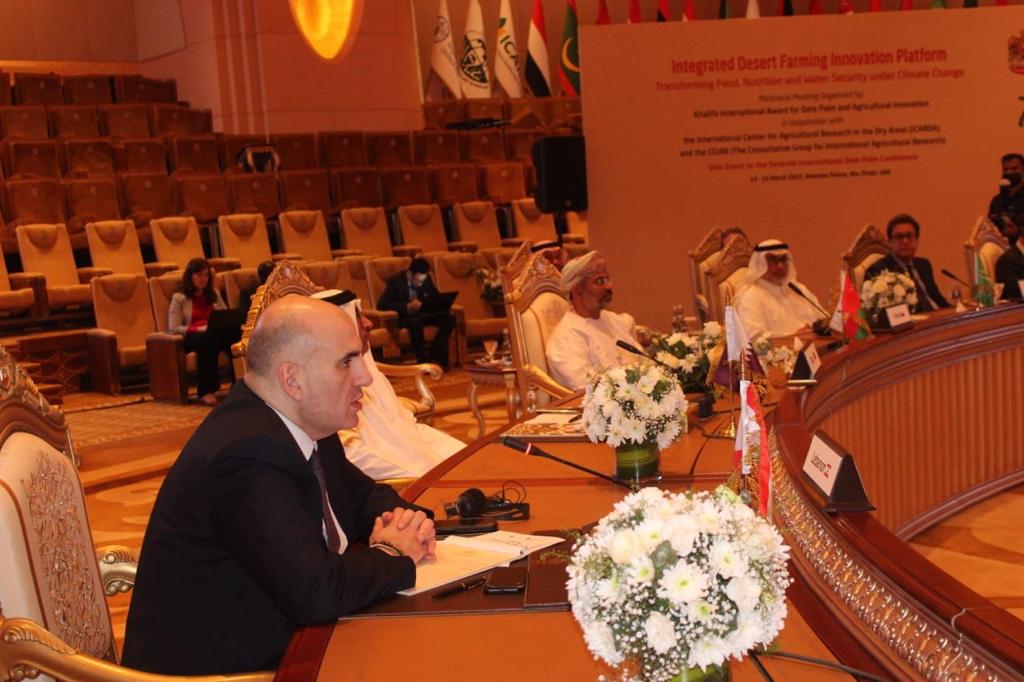 لبى المدير العام للزراعة المهندس لويس لحود دعوة جائزة خليفة الدولية لنخيل التمر والابتكار الزراعي وشارك في أبوظبي في لقاء حول منصة الابتكار للزراعة لتعزيز الأمن الغذائي والمائي في ظل تغير المناخ، في حضور صناع القرار في وزارات الزراعة في الدول العربية والمنظمات الدولية.
