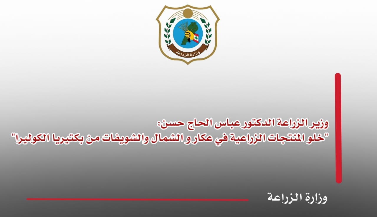 وزير الزراعة: «خلو المنتجات الزراعية في عكار والشمال والشويفات من بكتيريا الكوليرا»
