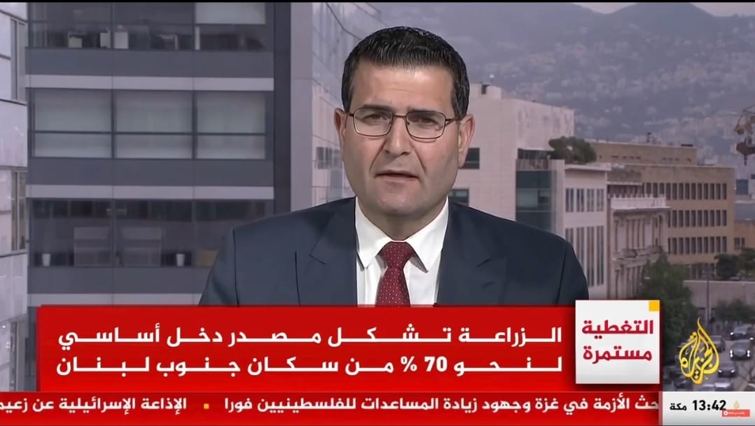 شجب وزير الزراعة في حكومة تصريف الأعمال الدكتور عباس الحاج حسن لقناة الجزيرة قبل عرضه لتفاصيل الأرقام حول آخر الإحصاءات بالنسبة للأضرار الزراعية وقال: «ان ما يحدث من هجمات عدوانية على قطاع غزة وعلى أطفالها وعلى فلسطين بكاملها هو اجرام حقيقي بحق الانسانية وان الاعتداءات المستمرة على أهلنا في الجنوب اللبناني هو استهداف بالمباشر للاراضي الزراعية والمنتجات الزراعية والقطاع الزراعي، واشار وزير الزراعة انه يتم متابعة الارقام والاعتداءات يوماً بيوم، ولكن عن بعد باساليب مختلفة. مؤكداً ان هذه الاحصاءات تعتبر دقيقة بنسبة %80 الى 85% بسبب الخطورة التي تواجه فرق الوزارة في الاماكن المستهدفة. وكشف الوزير اىحاج حسن خلال مقابلة على قناة الجزيرة "العدو يريد أن يجعل هذه المنطقة منطقة عازلة". وقال: نحن في لبنان انتصرنا نتيجة صمود أهلنا في الجنوب، ولا يمكن لنا الانتصار الا من خلال دعم مزارعيننا وثباتهم في أرضهم وقراهم، لأننا أصحاب حق. وسأل الحاج حسن "هل بمقدورنا أن نخمن الكميات التي من خلالها أدت الى ضرر" وقال: لربما أكثر من مليارين ونصف دولار وربما أكثر بكثير، ولكن ما ان تضع الحرب أوزارها سنصل الى الاحوبة الدقيقة والدراسات الموثقة لجميع الاسىلة التي تسأل »...