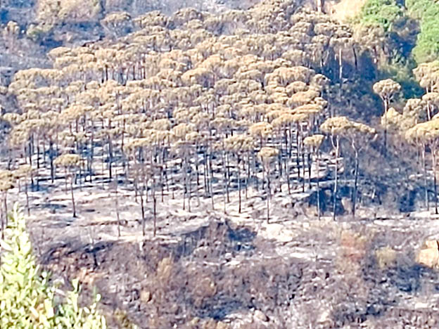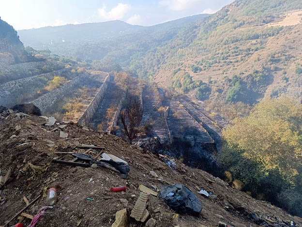 عارية ووادي الغباطية في قضاء جزين، حيث ما زالت بعض البقع تتصاعد منها الأدخنة