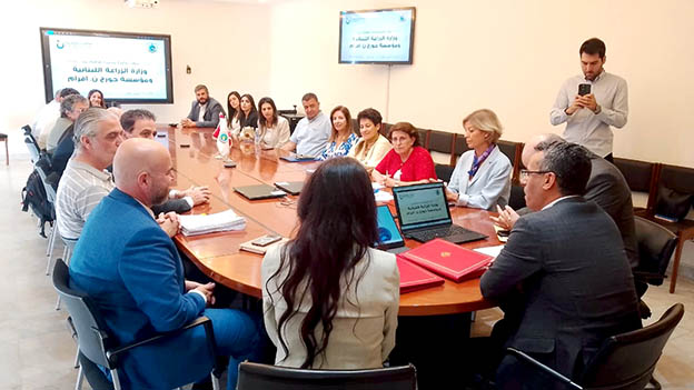 صورة تذكارية جمعت الوزير هاني والسيدة فرام والمدير العام لويس لحود وفريق العمل من الجانبين، تأكيدًا على