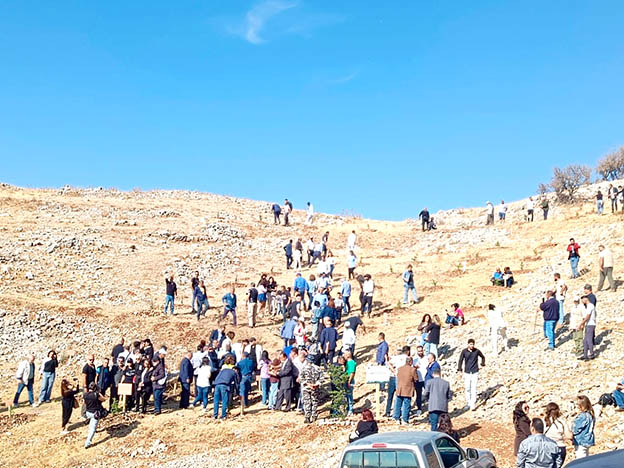 غرسات أرز تحمل أسماء الفنانين المشاركين، في مشهدٍ جمع بين