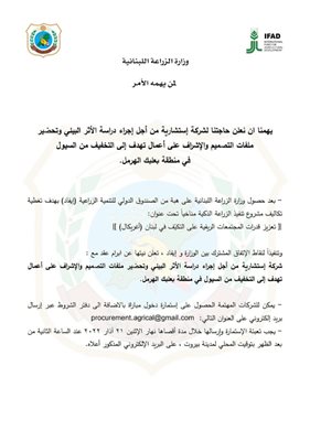 25 شباط 2022 Request for Expressions of Interest (Consulting Services – Firms selection  المزيد...