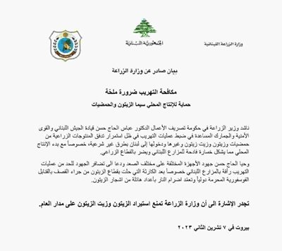 14 تشرين الثاني 2023 إحصاءات حول الاعتداءات التي افتعلها العدو الإسرائيلي  المزيد... 13 تشرين الثاني 2023 كتب وزير الزراعة في حكومة تصريف الاعمال الدكتور عباس  المزيد... 10 تشرين الثاني 2023 أكد وزير الزراعة في حكومة تصريف  المزيد... 07 تشرين الثاني 2023 #وزير_الزراعةالمزيد... 05 تشرين الثاني 2023 الوزير الحاج حسن عبر تطبيق "  المزيد... 02 تشرين الثاني 2023 ربيع احمد العوض وامجد  المزيد... 02 تشرين الثاني 2023 تقدم وزير الزراعة الدكتور عباس الحاج حسن  المزيد... 01 تشرين الثاني 2023 الوزير الحاج حسن في مجلس الوزراء: سنستعيد كل ما احرقه العدو  المزيد... عرض النتائج 941-950 (من 2107) |< < 91 - 92 - 93 - 94 - 95 - 96 - 97 - 98 - 99 - 100 > >|